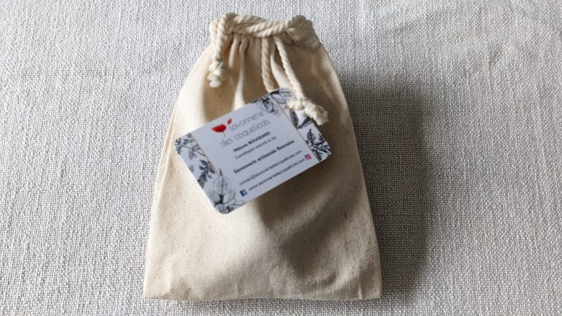 Sac en coton bio avec cordons de serrage certifié GOTS.(17cm x 24cm ) 25 grammes.