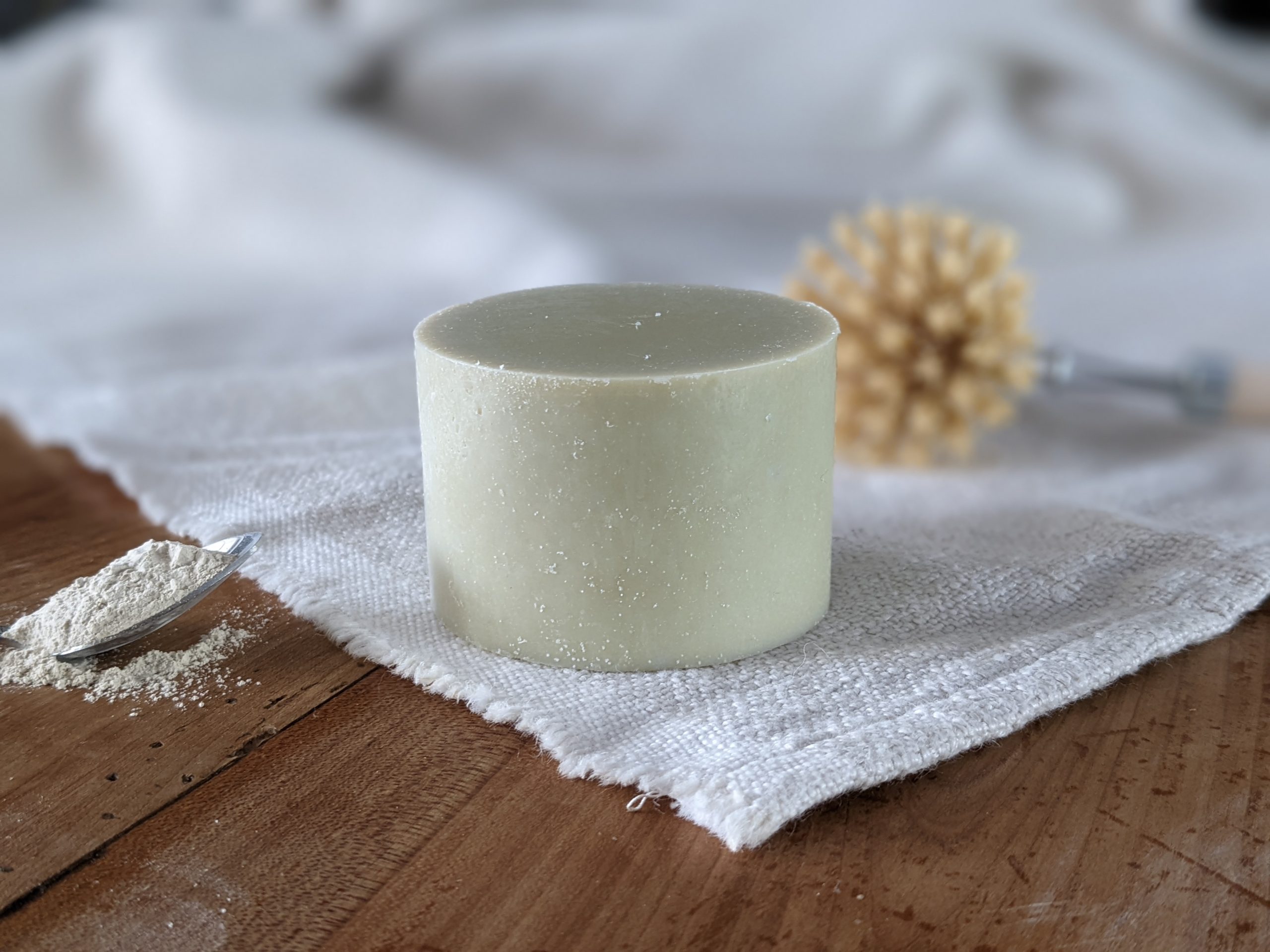 Ingrédients : Huile de colza locale saponifiée, Huile d’olive saponifiée, Huile de noix de coco saponifiée, Bicarbonate de sodium, Terre de Sommières et Huile essentielle de citron.